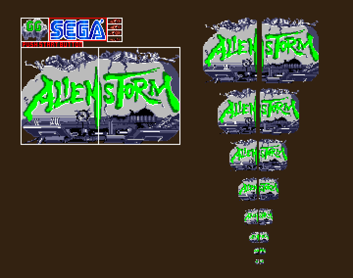 Like the Coming Attractions demo we did, we thought to make a snappy little demo advertising the coming of GG Alien Storm. It would feature some neat animations of a Game Gear and some screenshots of the game, but ultimately was never completed.