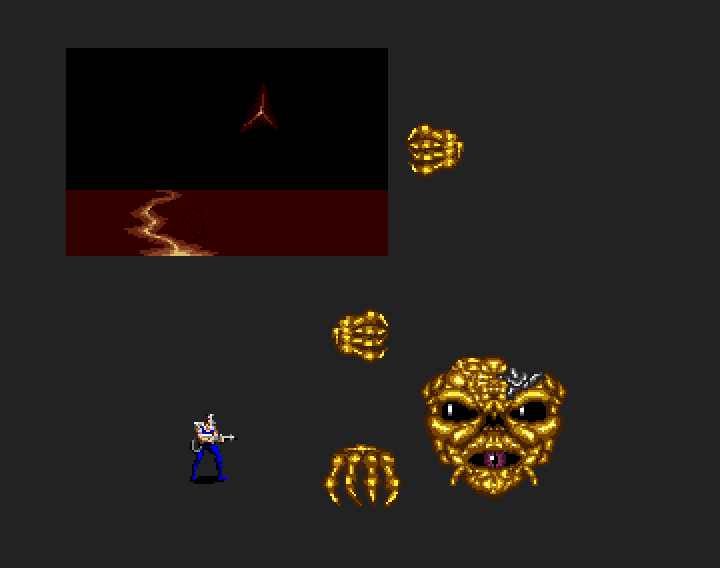 Early on, we had planned to make the shooting stages as well. This is an early mock-up, but it became too complex so we decided that concentrating on the standard action levels was a better idea (they are the core game after all).