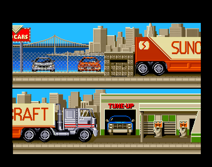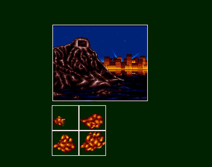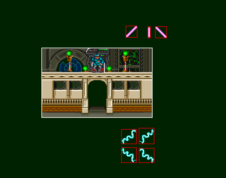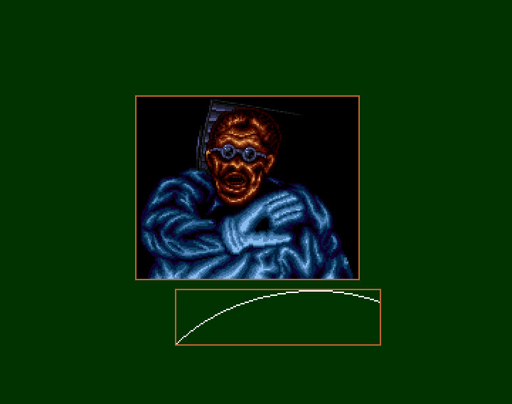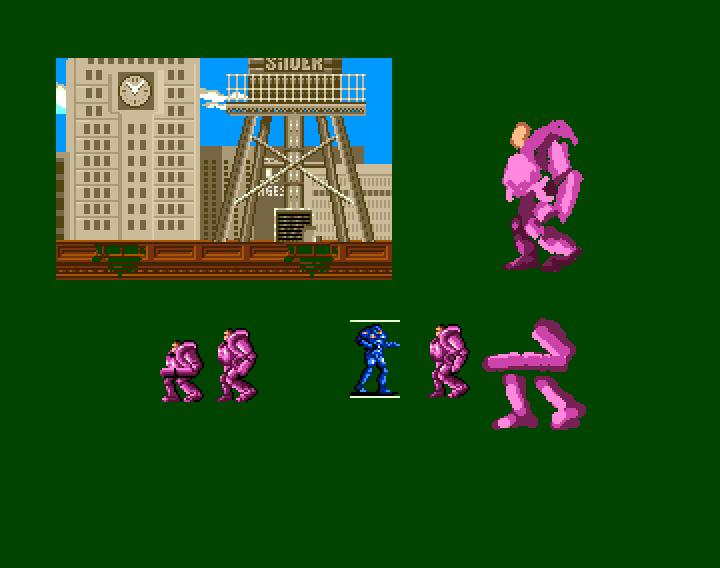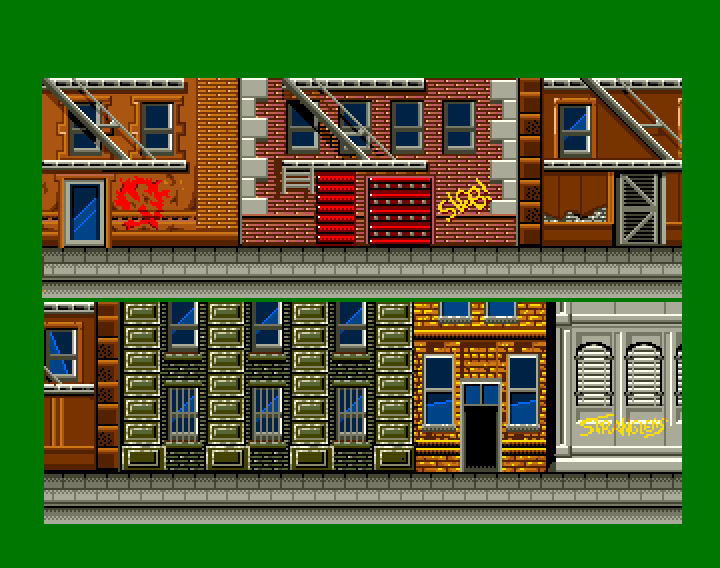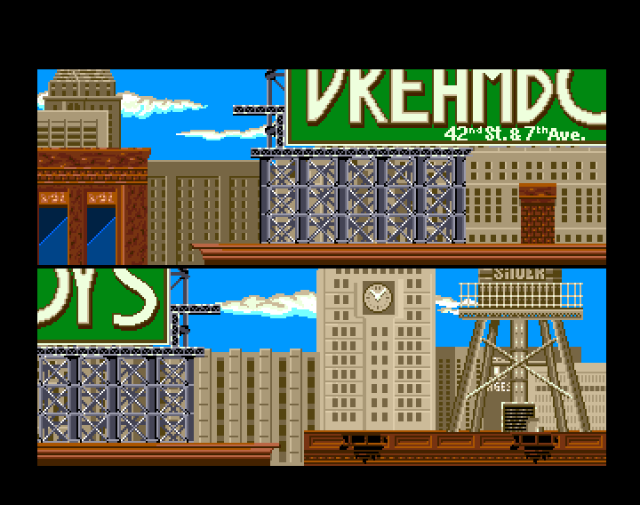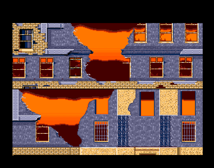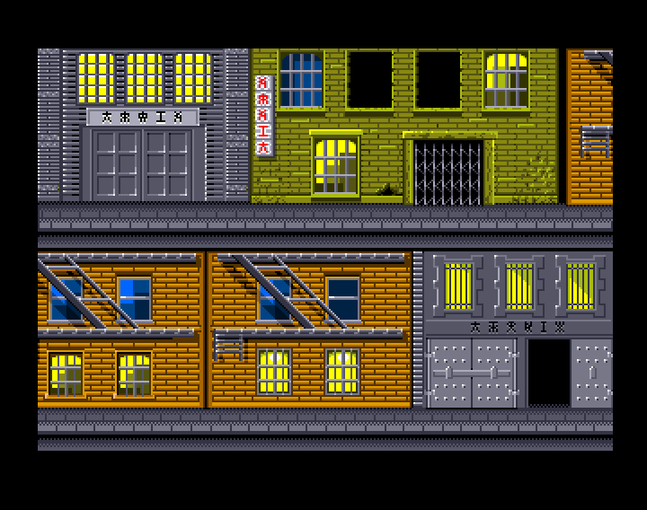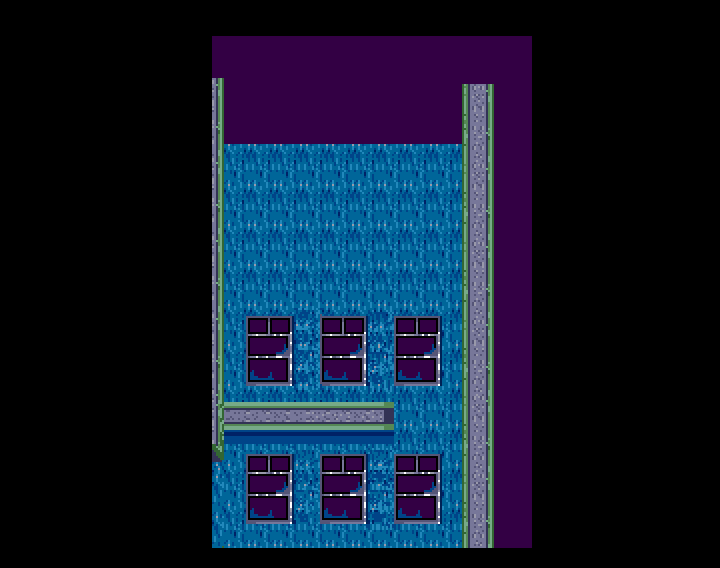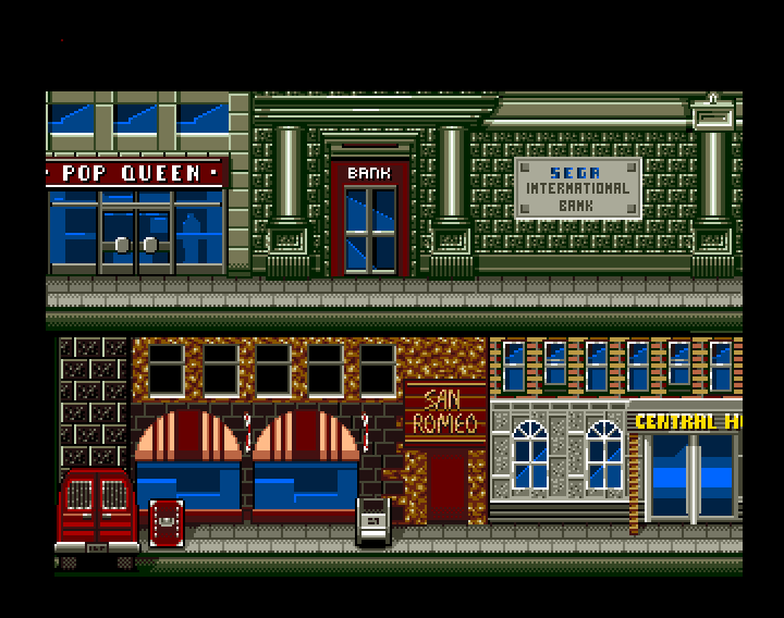 A shot from the ending sequence. I believe this was copied from a screenshot of Sega's Moonwalker.
