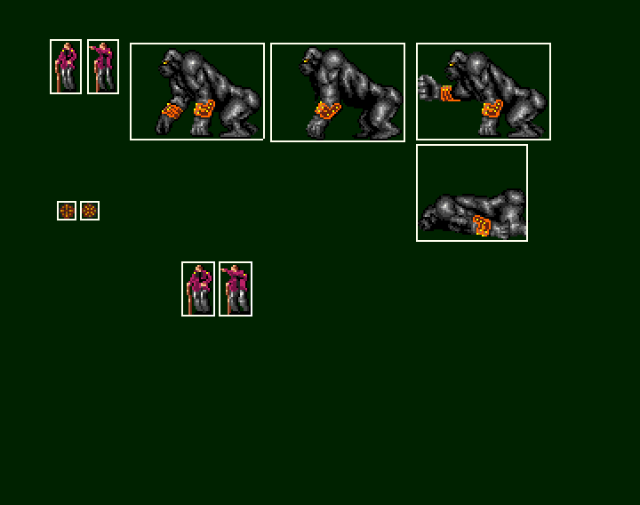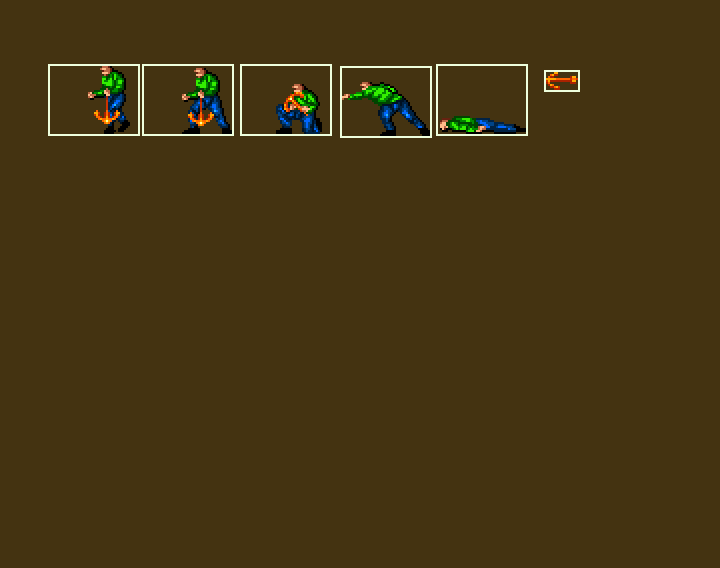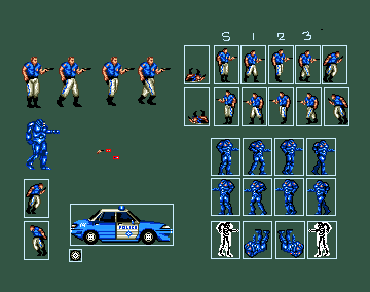This screen shows our often successful method of first drawing the sprite roughly at several times the intended size, then scaling it down and adding details. It's surprising how well it worked.