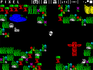 PIXEL is a point-and-click mini adventure game that takes you through 3 distinct 8-bit video game styles; the ZX81, ZX Spectrum and Commodore 64. Each area has a goal and puzzles that must be solved to continue. Controls are mouse based - right click cycles through the commands and the title bar contains inventory, options and the facility to save and load.